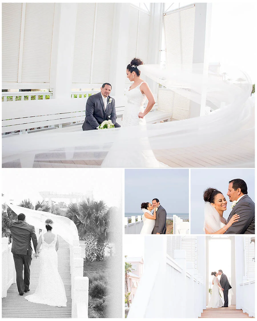 Marissa and Greg were married in the spring in South Padre Island, Texas. While they had a beach destination wedding, their celebration was focused more on the amazing wedding venue and family and friends to celebrate. Marissa had the lovely view and surroundings of an island wedding without all the sand and wind in her hair. It was awesome!